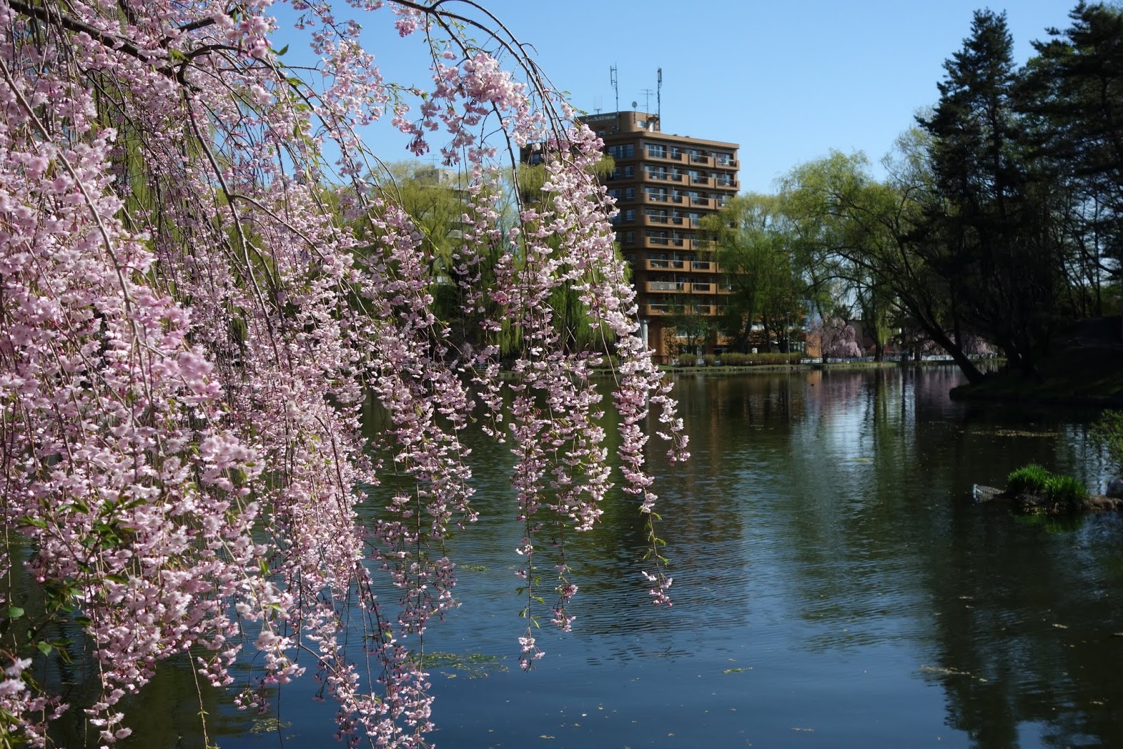 公園の池に「しだれ桜」らしきものが満開。なかなか綺麗です。